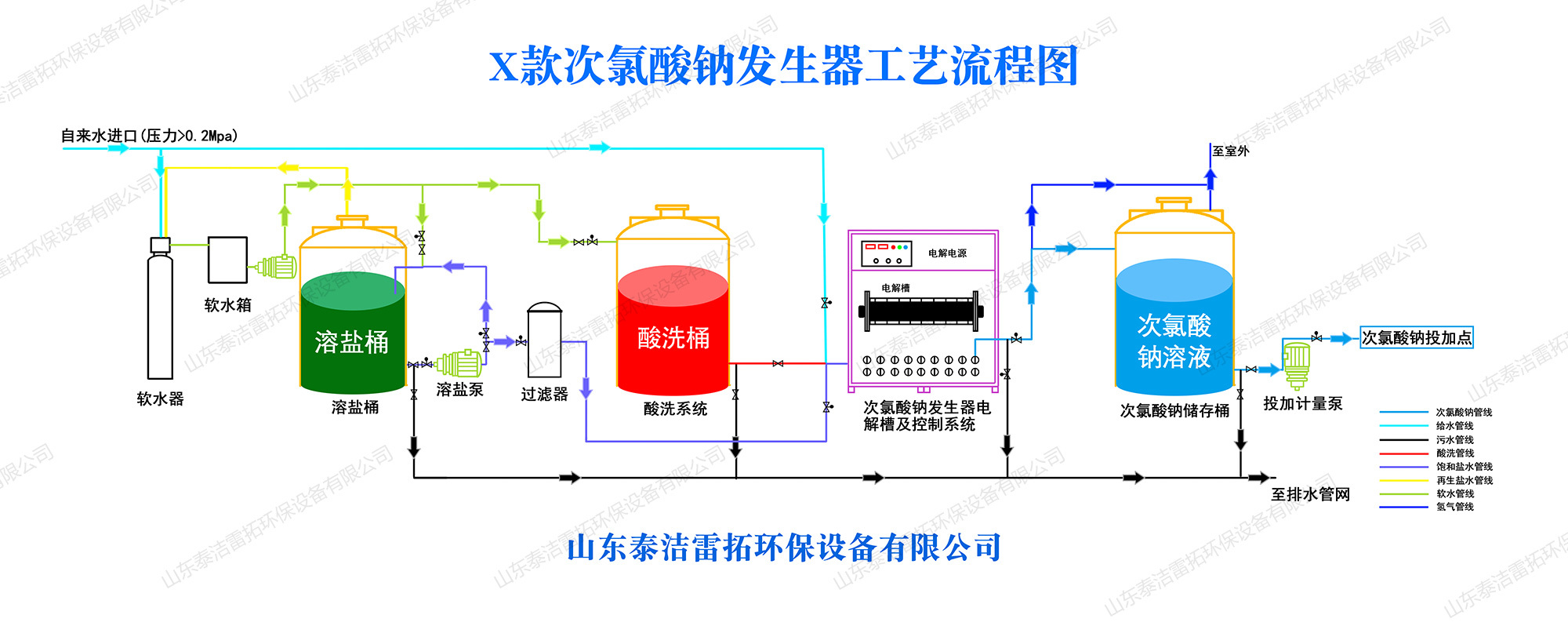 次氯酸钠发生器是一种采用无隔膜电解法电解稀盐水,制备低浓度次氯酸钠溶液的装置,具有原料易得、产物纯净、安全可靠的特点。适用于各类氯化消毒水处理。泰洁雷拓次氯酸钠发生器电极分为管状或板式、内冷、单极、复极组合形式,阳极以钛为基体+MMO特殊技术涂层,析氯电位低,电耗更低。