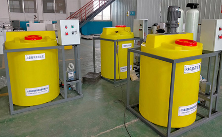 净水加药装置主要为PAC等絮凝的投加。加药过程可手动操作,也可通过PC机、磁翻板液位计、PH计、行程控制器、变频器等各种电器、仪表,使加药装置成为机电一体化产品,实现自动控制。