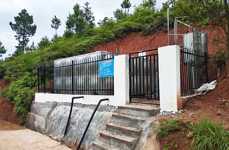 6、净水器使用于偏远山区、乡村,安装使用地点往往无电力供应的状况,要求设备能无电力运行,我们设计采用压力式加药罐利用原水进水的压力差投加混凝剂,水力控制消毒加药装置投加消毒剂无需电力即可解决投药问题,加药设备安装在设备基础或清水池的工作面上,无需设立高位加药箱重力加药避免了爬高加药的操作危险。